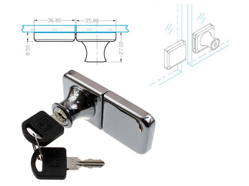 SISO-zamek ARON montowany na klej UV (LUV836035) Materiał: ZnAl Wykończenie: chrom Zastosowanie: do drzwi podwójnych, do dowolnej grubości szkła Może być montowany na dowolnej wysokości gabloty Nie wymaga wiercenia w szkle Wyprofilowany korpus cylindra spełnia funkcje uchwytu dane techniczne |