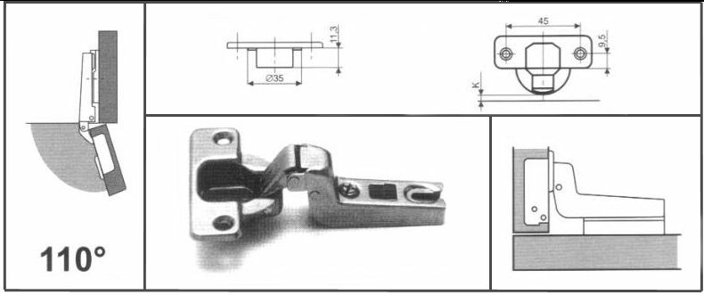 CECHY PRODUKTU: - Zawias do drzwi nakładanych - Kąt otwarcia 110° - Średnica puszki: 35 mm - Głębokość puszki: 12,4 mm - Hamulec wbudowany w puszkę zawiasu - Regulacja mimośrodem w 3 płaszczyznach - Do drzwiczek o grubości 16 - 26 mm - Wyprodukowany we Włoszech |